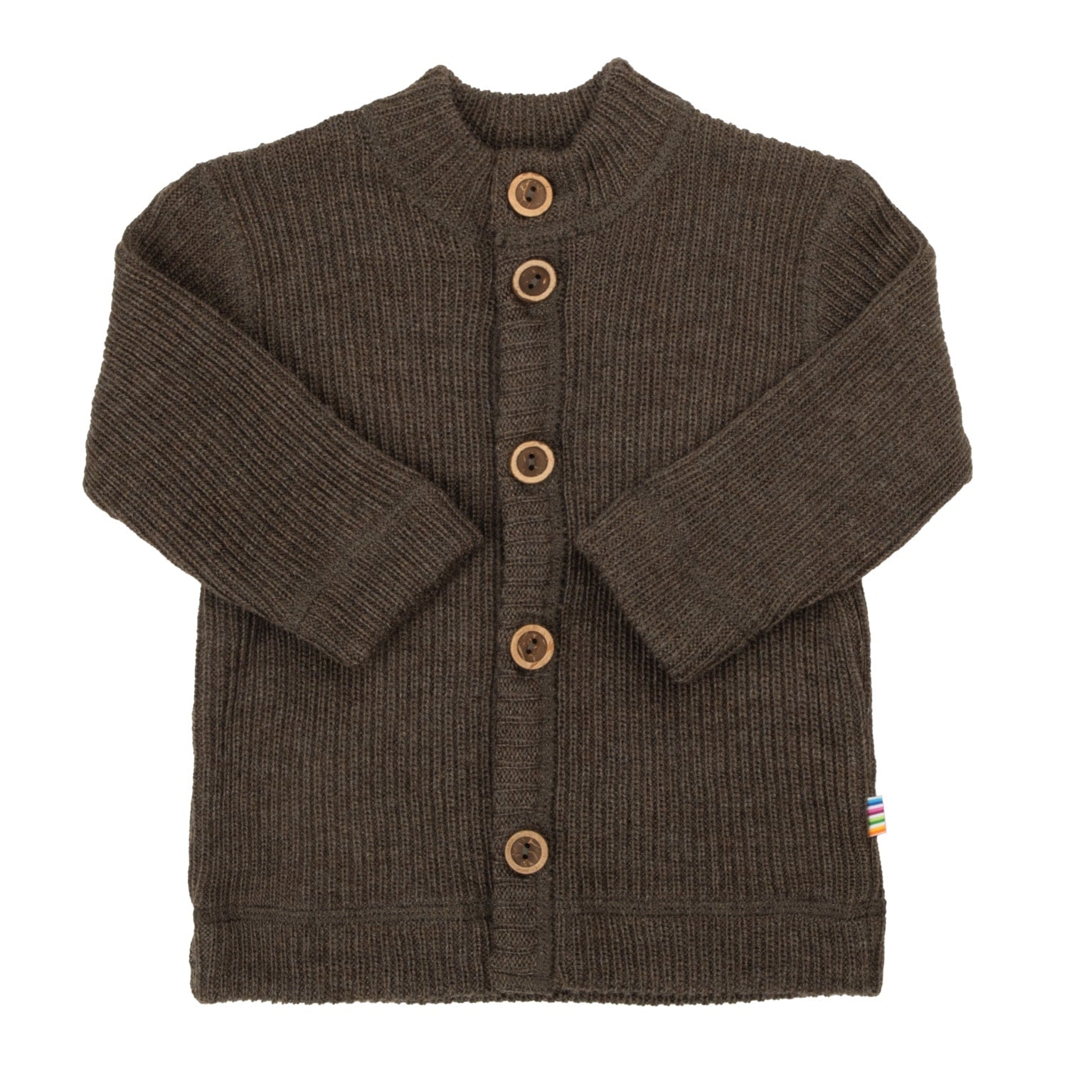 Ribbestrikket cardigan i 100% myk merinoull fra JOHA. Modellen har knapper langs fronten for enkel påkledning og behagelig passform.