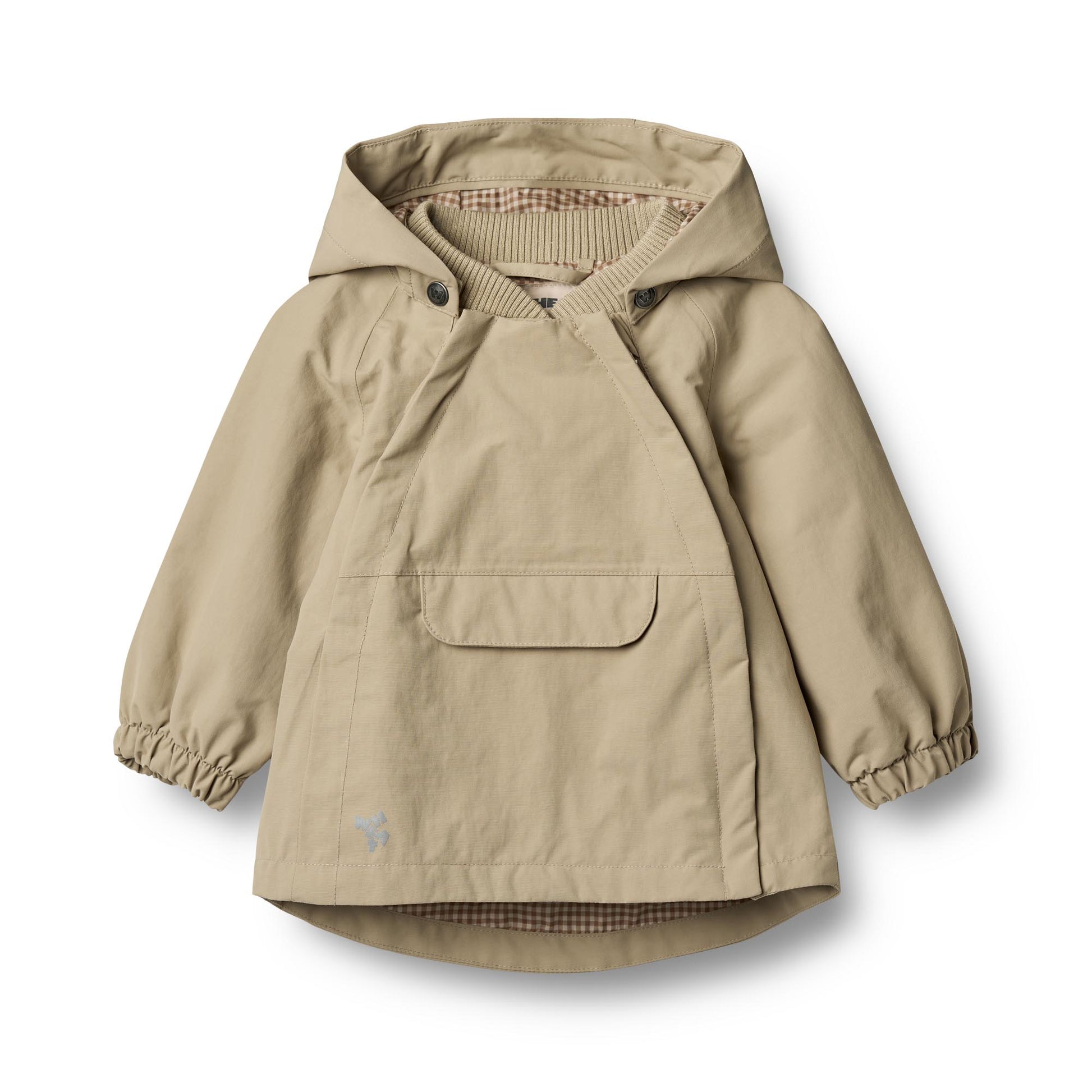 Tech-jakken har et anorak-look og er litt lengre bak. Den har flere fine detaljer som elastikker ved håndleddene, ribbekrage, brystlomme samt en avtagbar og justerbar hette. Jakken har to skjulte glidelåser foran, noe som gjør det lett for deg å kle på barnet ditt, siden en av glidelåsene kan åpnes helt ned. Det er en ekstra borrelåslukking på innsiden av jakken for å sikre den og holde den på plass.