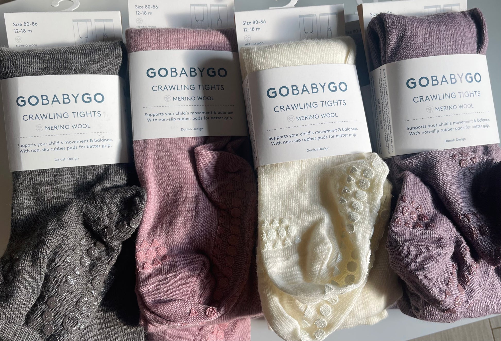 GoBabyGo Non-Slip Crawling Tights in Merino Wool with Grip for Babies and Toddlers feature specially designed rubber pads on the knees, soles, and toes, ensuring your child doesn't slip while learning to crawl and walk. They support your child's motor skills, balance, and confidence.