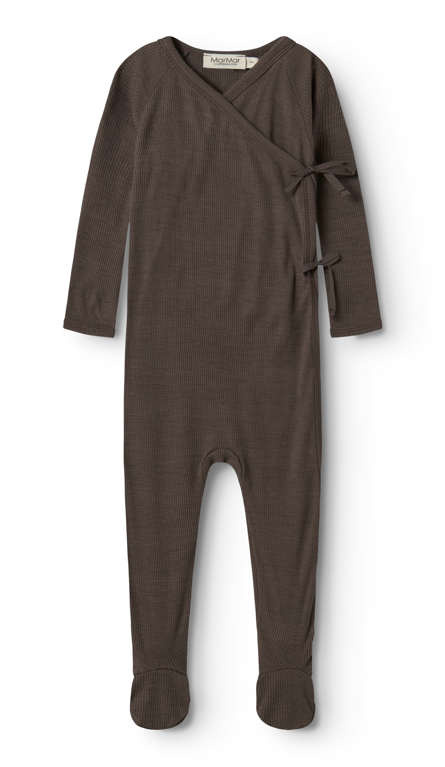 Heldress med omslag og med fot, i ull og med ribb